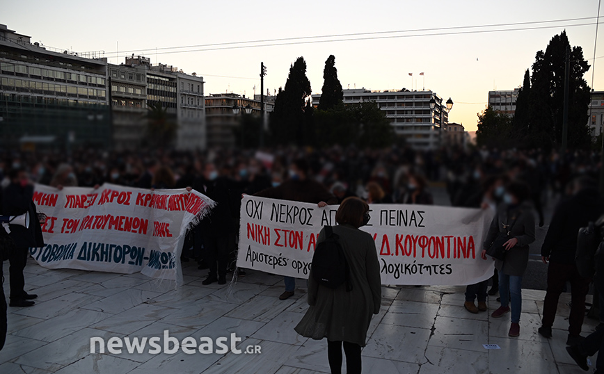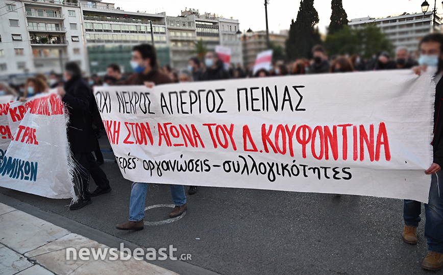 Αρκετός κόσμος συγκεντρώθηκε και σήμερα στην πλατεία Συντάγματος, για να συμμετάσχει στην κινητοποίηση υπέρ του απεργού πείνας, Δημήτρη Κουφοντίνα, ο οποίος αιτείται τη μεταφορά του στον Κορυδαλλό.