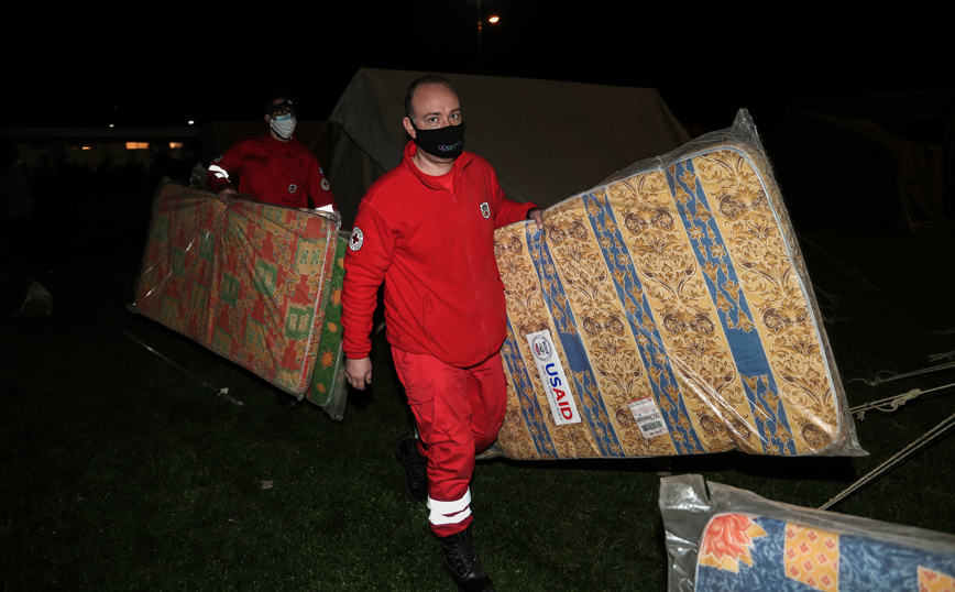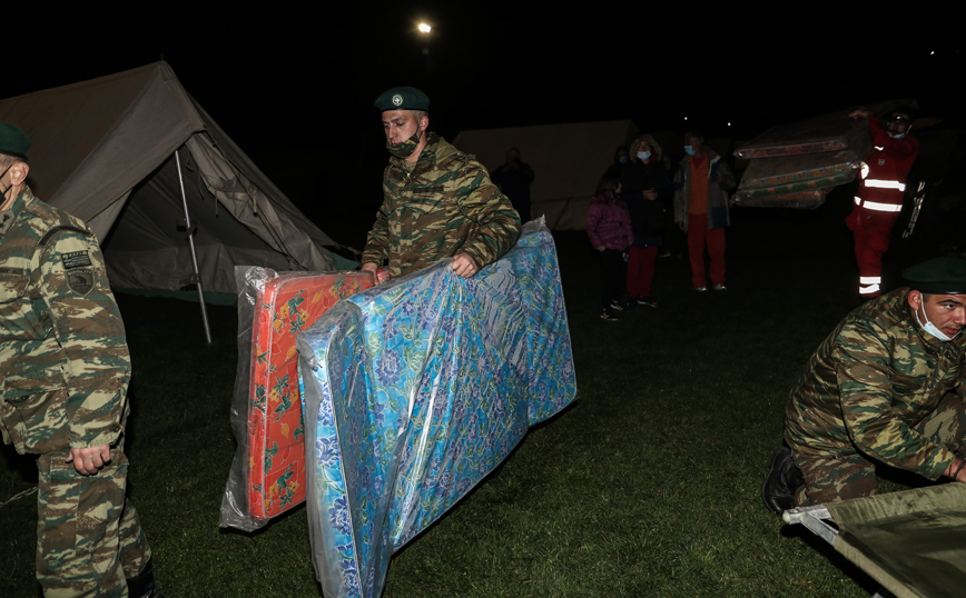 Οι κάτοικοι διανυκτέρευσαν σε σκηνές που στήθηκαν σε γήπεδο της περιοχής από τον στρατό, καθώς τα σπίτια τους υπέστησαν ζημιές και οι μετασεισμοί είναι συνεχείς.