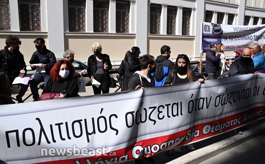 Με σύνθημα «Συλλογικές Συμβάσεις ΠΑΝΤΟΥ!» τα μέλη της Ομοσπονδίας, του Σωματείο Ελλήνων Ηθοποιών και γενικότερα άτομα που εργάζονται στον χώρο του θεάματος είχαν δώσει ραντεβού στις 12:00 έξω από το υπουργείο Πολιτισμού.