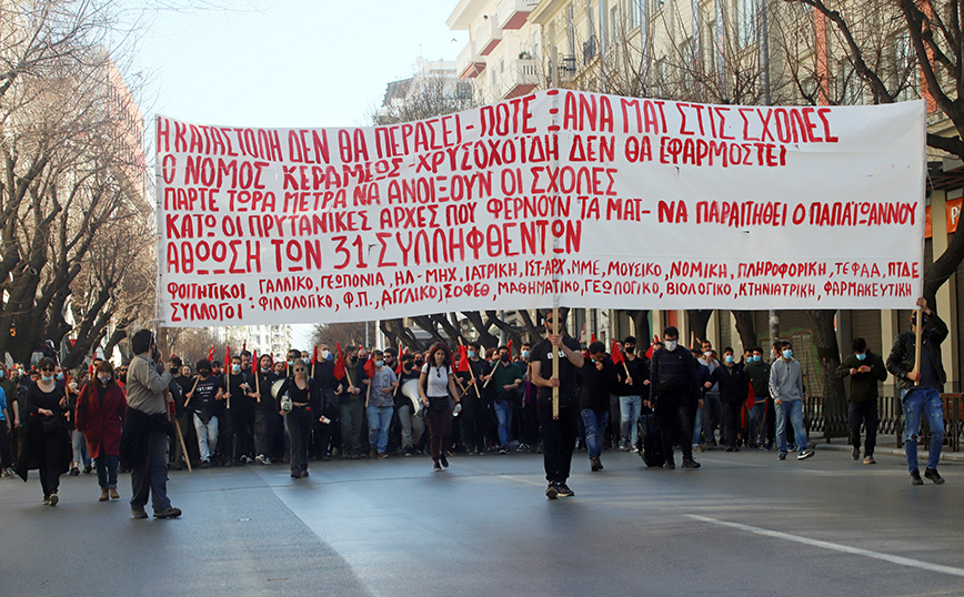 Συγκέντρωση και πορεία ενάντια στο νέο νόμο για τις ανώτατες σχολές πραγματοποίησαν το μεσημέρι της Πέμπτης (4/3) στο κέντρο της Θεσσαλονίκης φοιτητές, ζητώντας την κατάργησή του. Μεταξύ των αιτημάτων ήταν και η αθώωση των τριάντα ενός συλληφθέντων για τα επεισόδια, προ ημερών, στο ΑΠΘ.