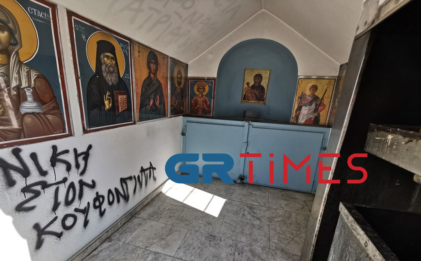 Συγκεκριμένα άγνωστοι έγραψαν με σπρέι «νίκη στον Κουφοντίνα», κάτω από τις εικόνες στο παρεκκλήσι της Αγίας Αικατερίνης που βρίσκεται έξω από τον Ιερό Ναό του Αγίου Αθανασίου επί της οδού Εγνατίας. Ακόμα, στο πάνω μέρος, άλλο σύνθημα αναφέρει: «Η θρησκεία σας βρωμά πατριαρχεία» αναφέρει το grtimes.gr.