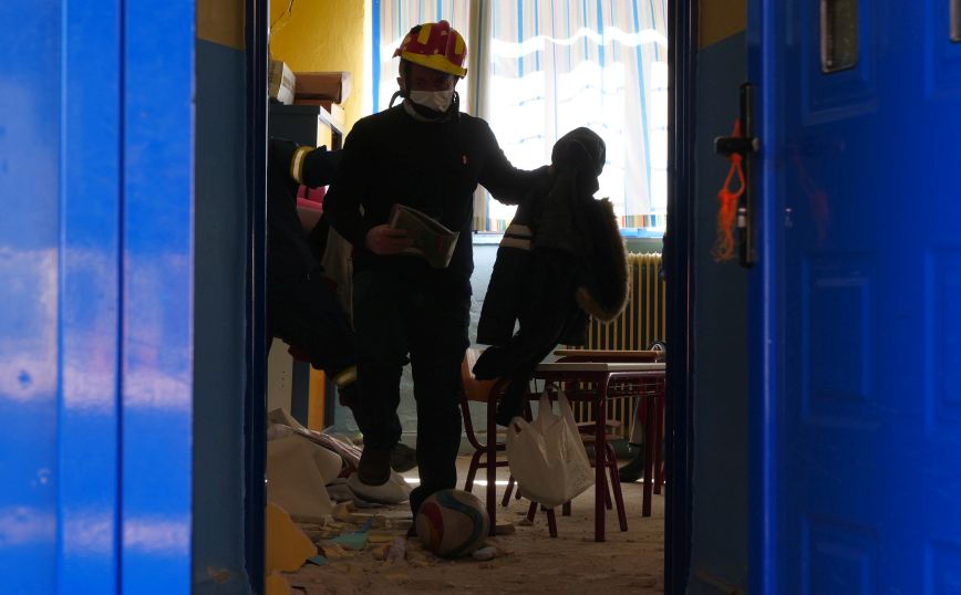 Αντικείμενα, γυψοσανίδες, μεσοτοιχίες, σοβάδες έπεφταν στο χώρο, όπως λέει ο διευθυντής, ενώ στο διάδρομο τα πάντα είχαν σκοτεινιάσει από το σύννεφο σκόνης που είχαν δημιουργηθεί, από τα μπάζα που κατέρρεαν. «Άκουγα φωνές, κραυγές, κλάμματα… δεν έβλεπα μπροστά μου. Στην πρώτη αίθουσα που μπήκα, το μάτι που έπεσε στο πρώτο θρανίο και είδα το παιδί να βρίσκεται από κάτω. Τότε σκέφτηκα: “ίσως να είμαστε τυχεροί”. Τα παιδιά με τους δασκάλους είχαν εφαρμόσει το σχέδιο εκτάκτου ανάγκης και το ευτύχημα είναι πως λόγω του κορονοϊού το κάθε παιδί είχε το δικό του θρανίο και αρκετό χώρο για να προφυλαχτεί».