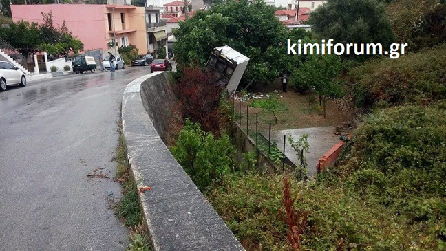 Όπως αναφέρει το φωτορεπορτάζ του evianews.gr, ο οδηγός φορτηγού ψυγείου γαλακτοκομικών προϊόντων προσέκρουσε αρχικά σε ένα αυτοκίνητο και κατέληξε ακολούθως σε ένα χαντάκι ύψους τριών μέτρων.