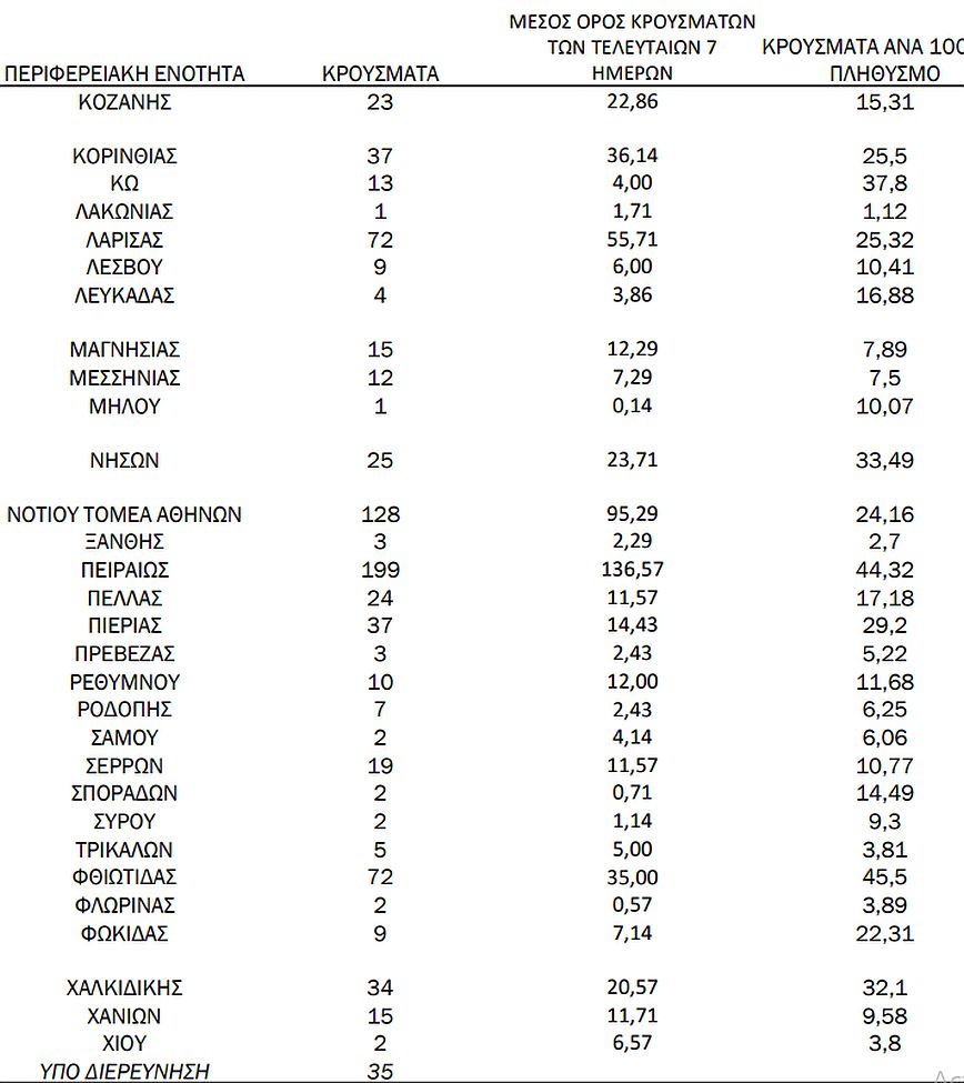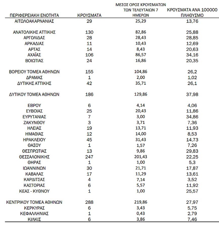Δείτε αναλυτικά την κατανομή των κρουσμάτων
