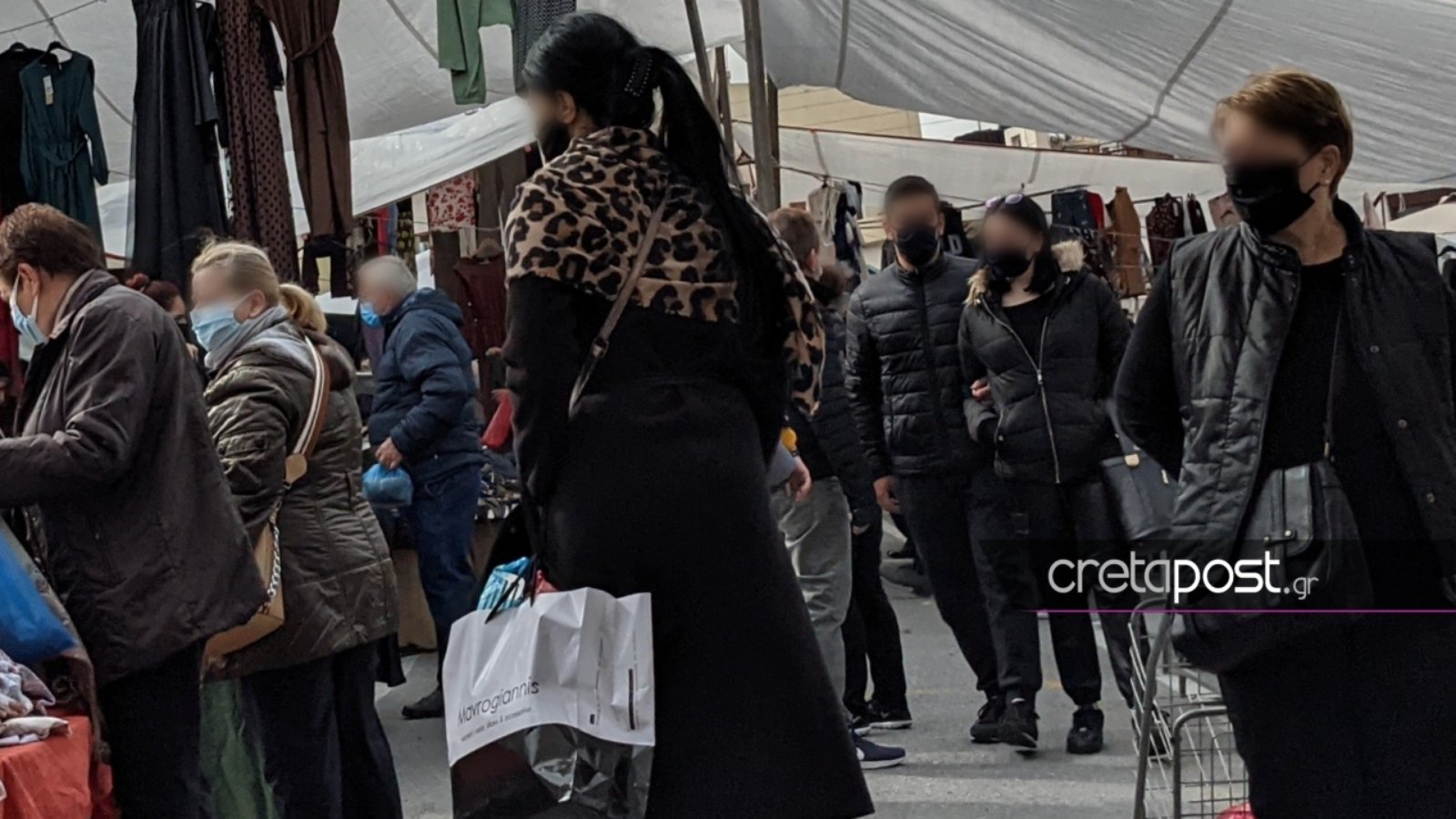 Σύμφωνα με φωτογραφίες του Cretapost.gr, αρκετός κόσμος πήγε για τα ψώνια τους, με τους περισσότερους να τηρούν τα μέτρα φορώντας μάσκα.