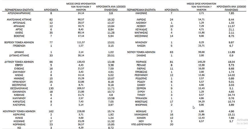 Η κατανομή των 1.133 νέων εγχώριων κρουσμάτων ανά Περιφερειακή Ενότητα παρουσιάζεται στον κατωτέρω πίνακα: