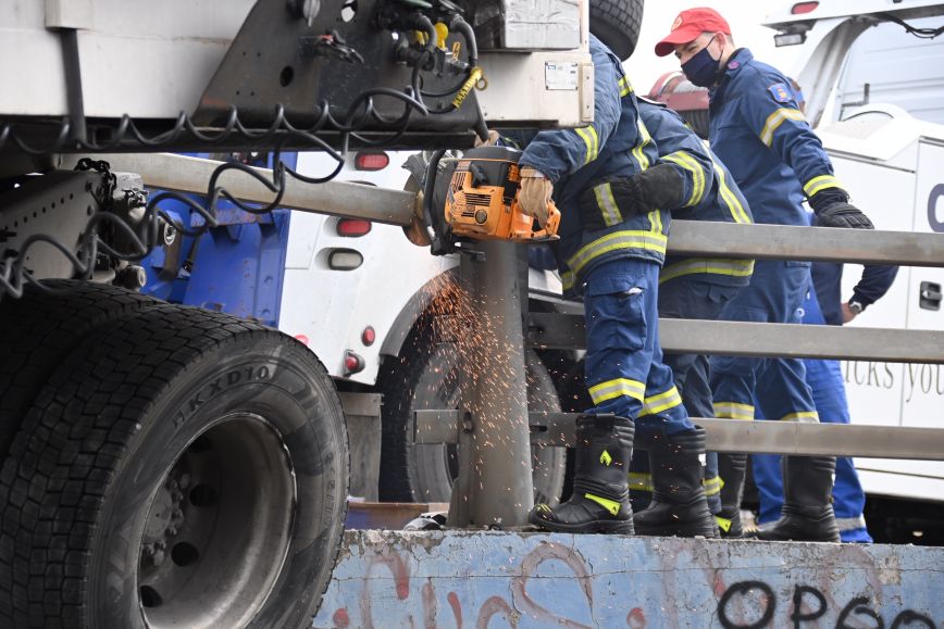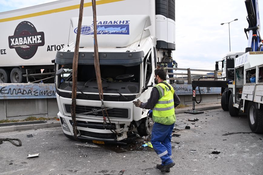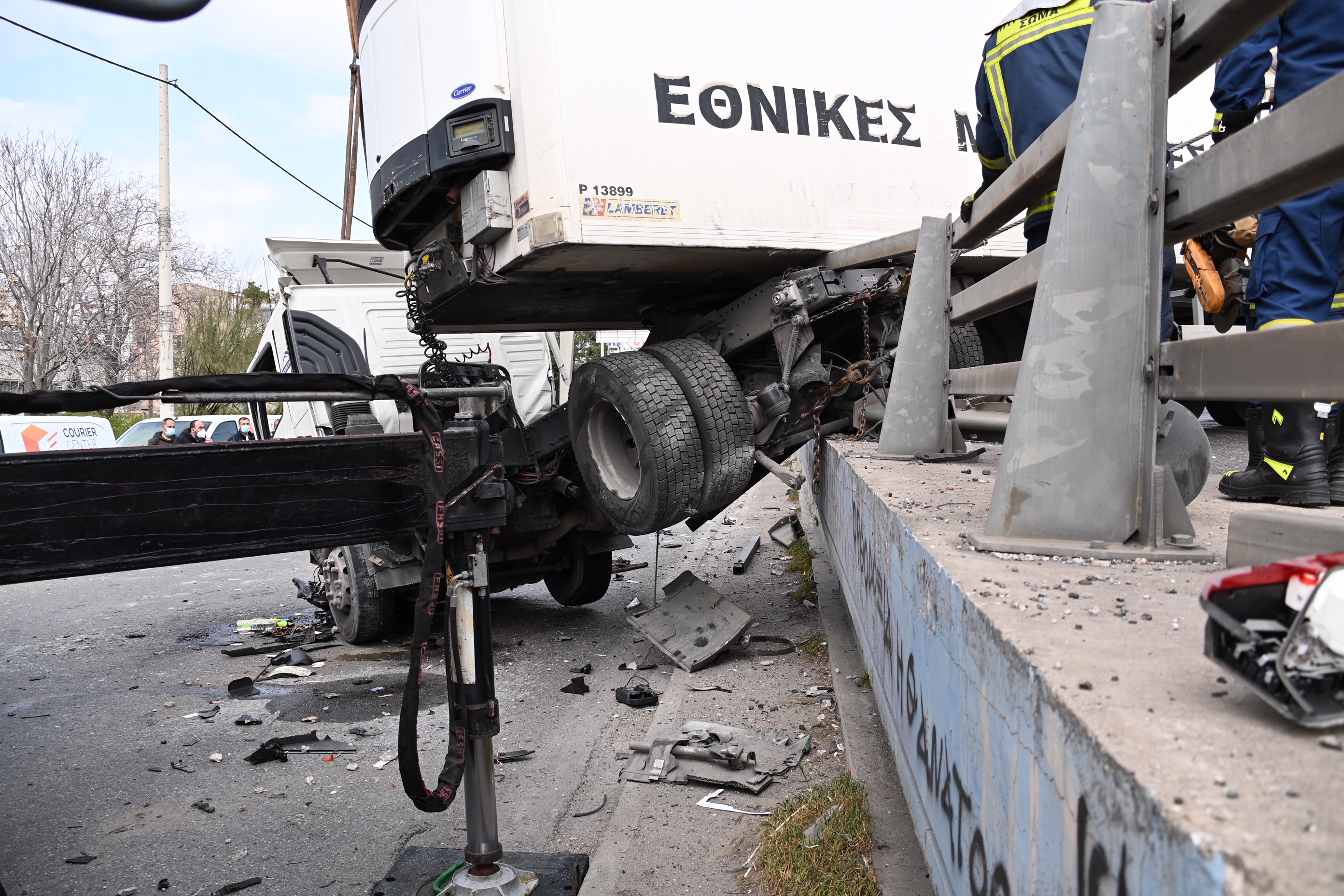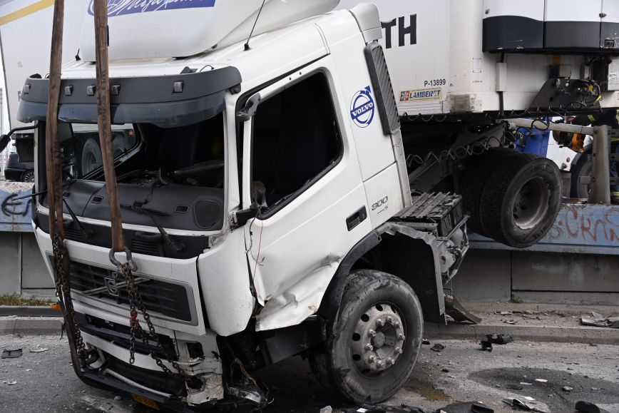 Συγκεκριμένα, μία νταλίκα έφυγε από την πορεία του, με αποτέλεσμα ένα τμήμα του να πέσει στον παράδρομο και το υπόλοιπο να κλείσει σχεδόν τις τρεις λωρίδες του δρόμου στο συγκεκριμένο σημείο.