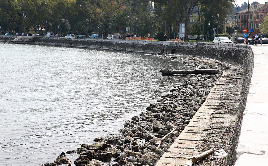 Βράχια, φύκια, μεγάλες πέτρες, ακόμη και κορμούς δέντρων, άφησε πίσω της η άμπωτη που «ρούφηξε» τη θάλασσα στον όρμο της Γαρίτσας, το Ποντικονήσι, αλλά και το λιμάνι της Λάκκας στους Παξούς.