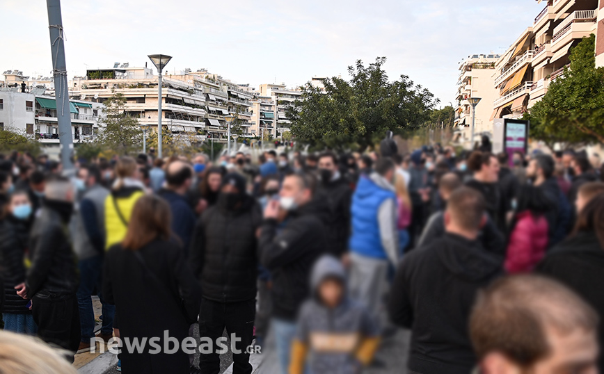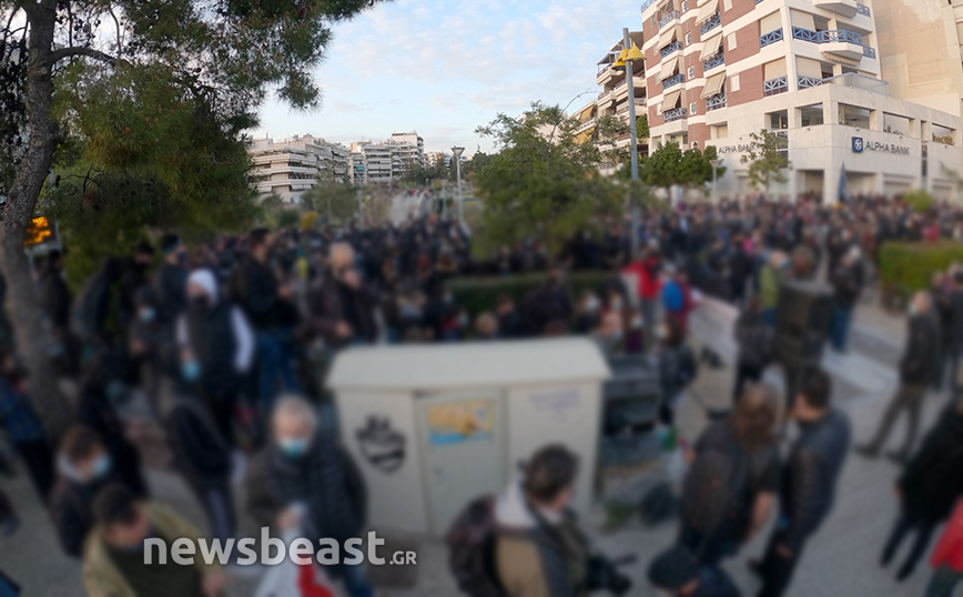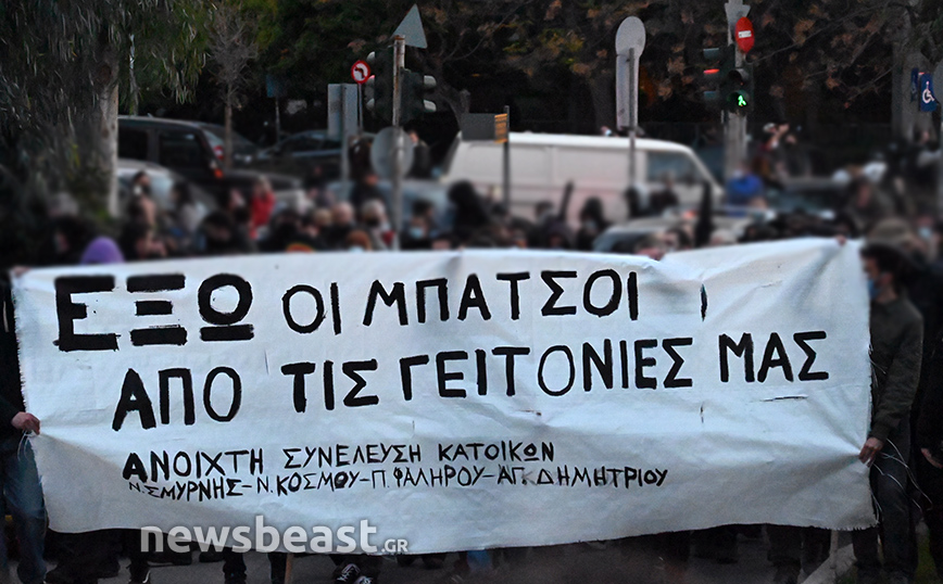 Πλήθος κόσμου συμμετέχει σε πορεία στη Νέα Σμύρνη μετά από κάλεσμα κατά της αστυνομικής βίας για τα όσα συνέβησαν στην πλατεία την περασμένη Κυριακή.