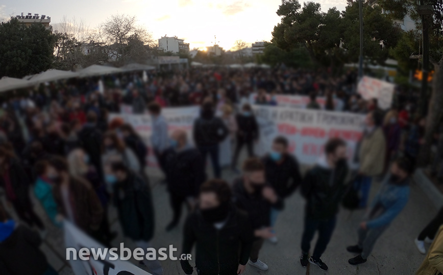 Εκεί οι συγκεντρωμένοι φώναξαν συνθήματα ενάντια στην αστυνομική βία και καταστολή, καταγγέλλοντας όσα συνέβησαν, ενώ λίγο μετά τις 18:30 ξεκίνησε πορεία στους κεντρικούς δρόμους της περιοχής.