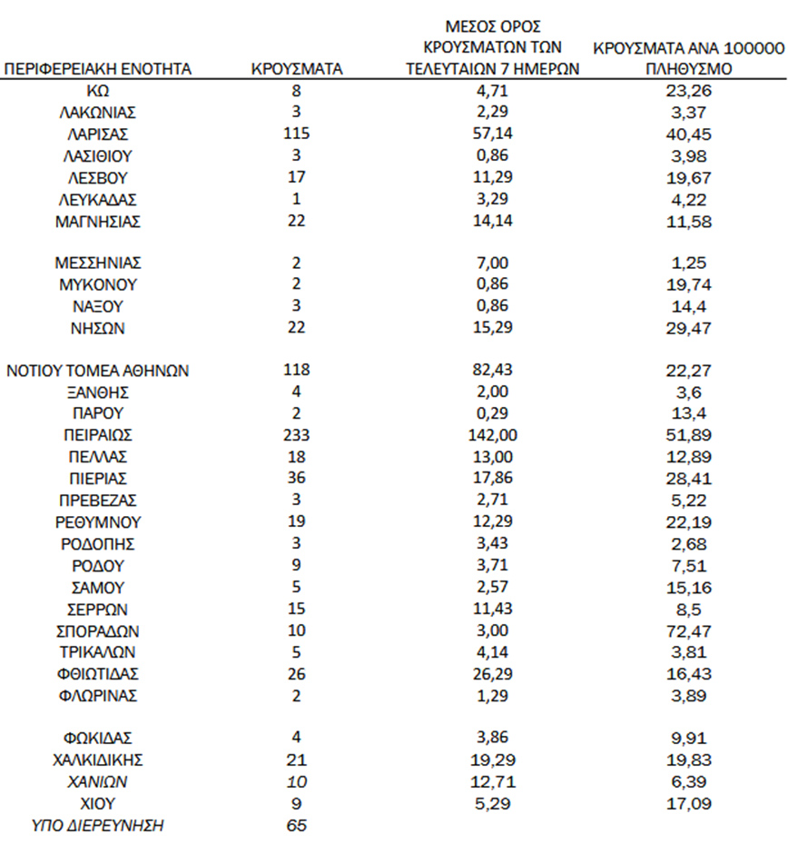 - 26 κρούσματα στην Π.Ε. Φθιώτιδας