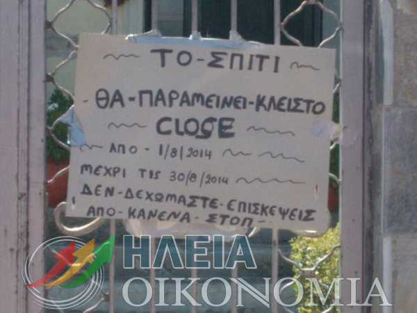 «Το σπίτι θα παραμείνει κλειστό, close. Δε δεχόμαστε επισκέψεις από κανέναν, στοπ», γράφουν στην Ηλεία.