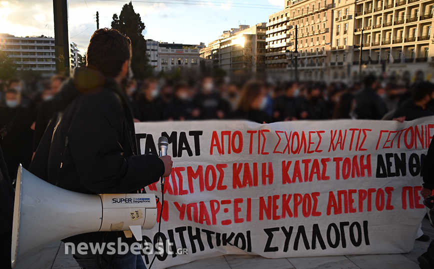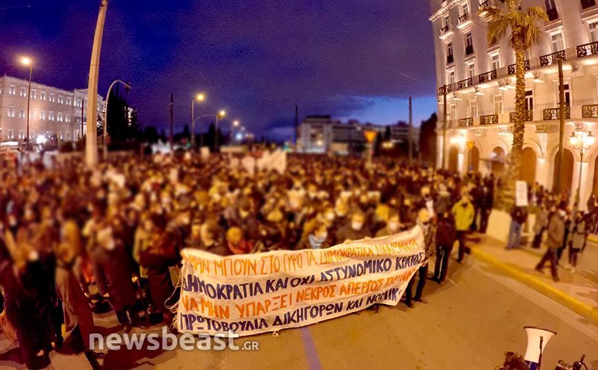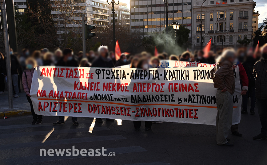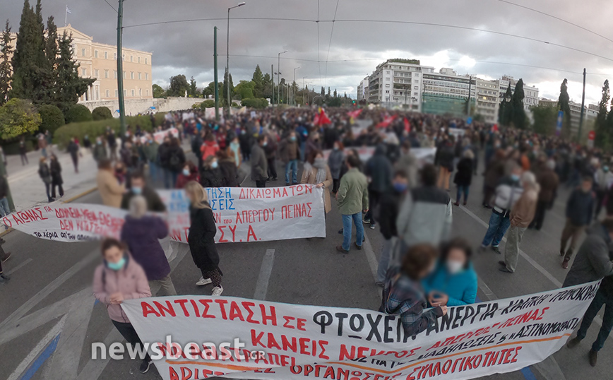 Με κεντρικό σύνθημα «Αν δεν αντισταθούμε σε κάθε γειτονιά θα βγαίνουμε απ’ το σπίτι μας μονάχα για δουλειά» οργανώσεις και συλλογικότητες της Αριστεράς και του αντιεξουσιαστικού χώρου, δικηγόροι, εκπαιδευτικοί, φοιτητικοί σύλλογοι, σωματεία κι άλλοι φορείς πραγματοποιούν πορεία προς την Ομόνοια, ενώ νωρίτερα είχαν συγκεντρωθεί στο Σύνταγμα.