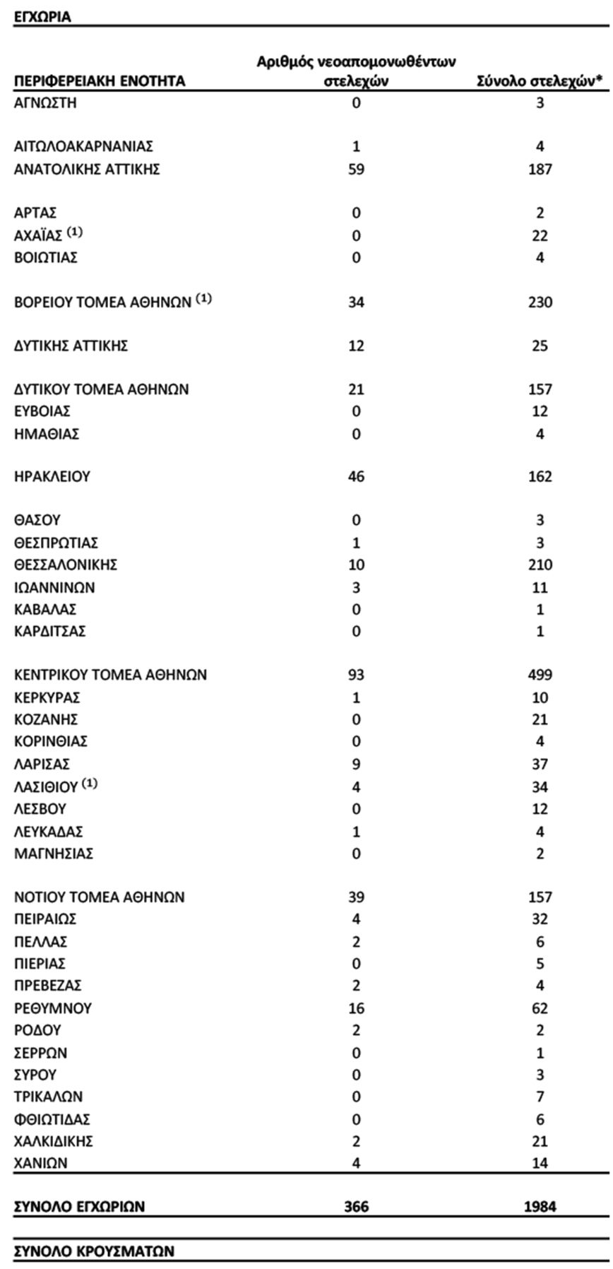 Τα δείγματα προέρχονται από τις Περιφέρειες Κεντρικής Μακεδονίας, Ηπείρου, Θεσσαλίας, Κρήτης, Αττικής και τις Περιφερειακές Ενότητες Λευκάδας, Φθιώτιδας και Ρόδου.