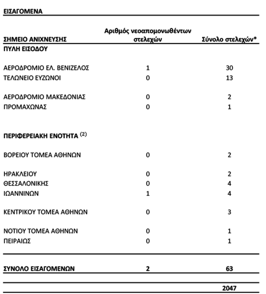 Συνολικά έχουν ταυτοποιηθεί 2.047 θετικά για την παρουσία μετάλλαξης Β.1.1.7/UK lineage και 51 θετικά για την παρουσία μετάλλαξης B.1.351/South Africa, από την έναρξη λειτουργίας του Εθνικού Δικτύου Γονιδιωματικής Επιτήρησης γιατις μεταλλάξεις του SARS- CoV-2 έως σήμερα.