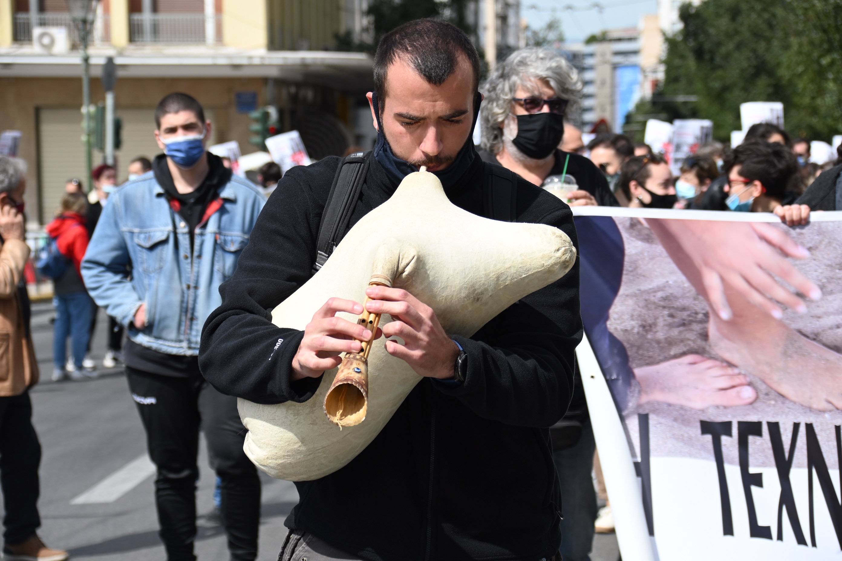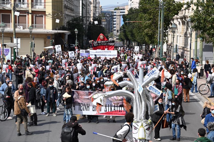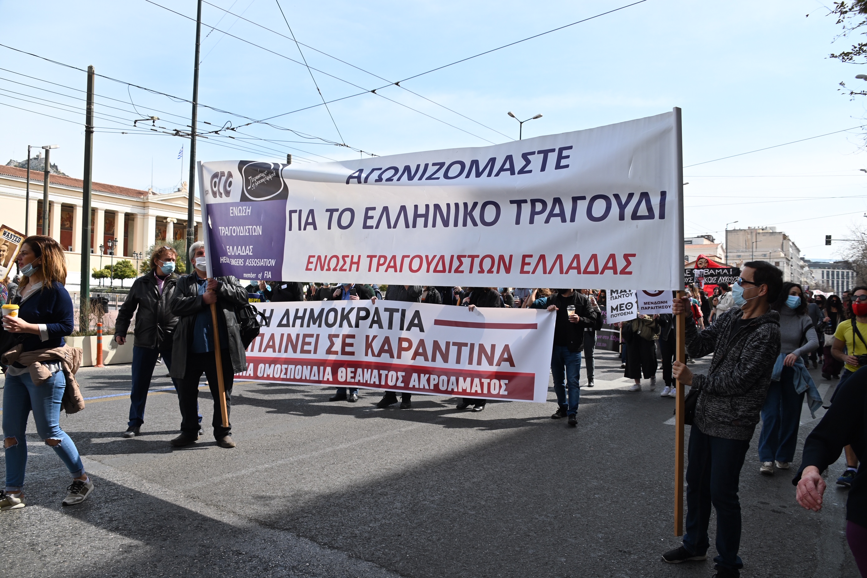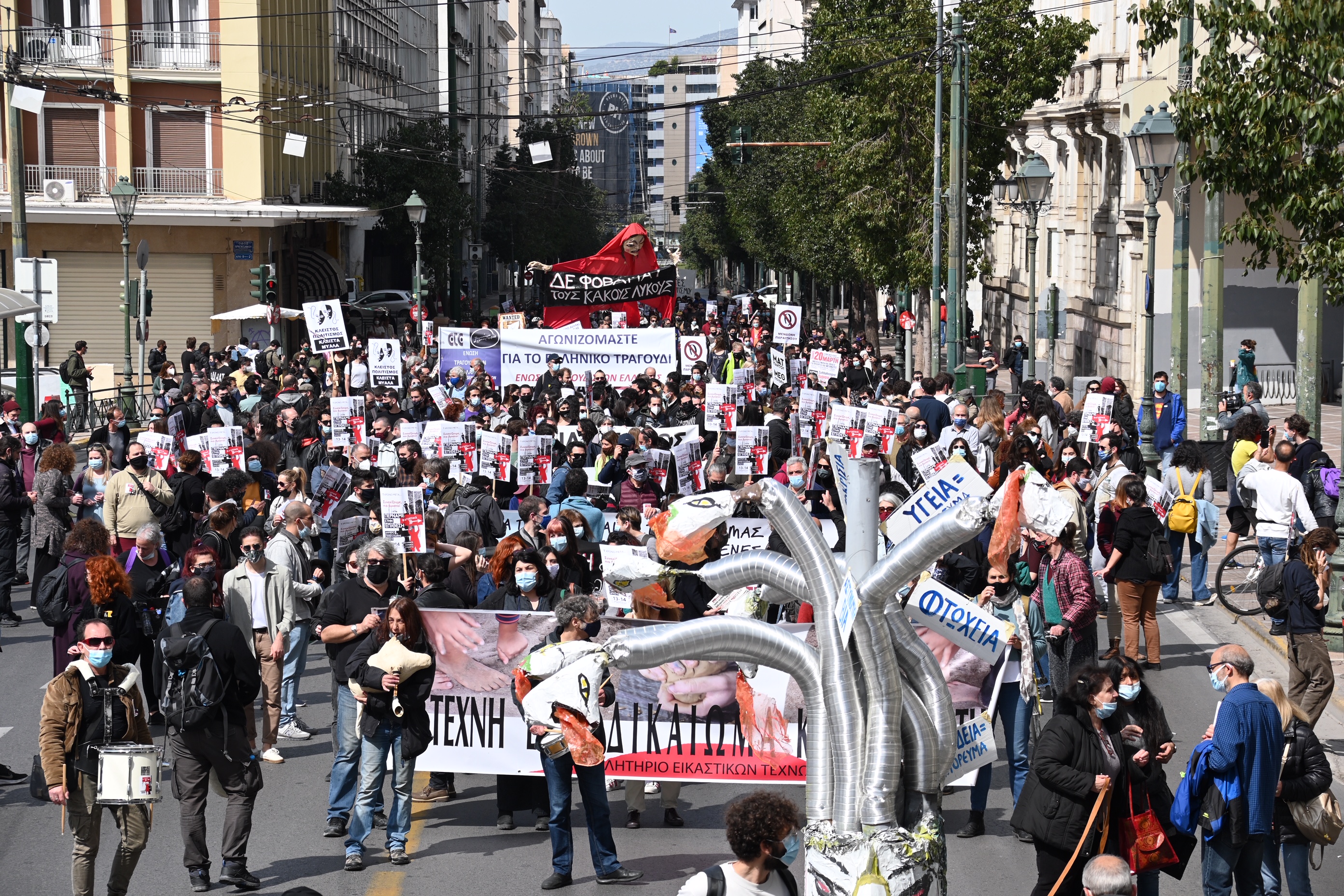 Στους δρόμους βρίσκονται για ακόμη μία φορά οι καλλιτέχνες, αυτή τη φορά πραγματοποιώντας πορεία προς τη Βουλή.