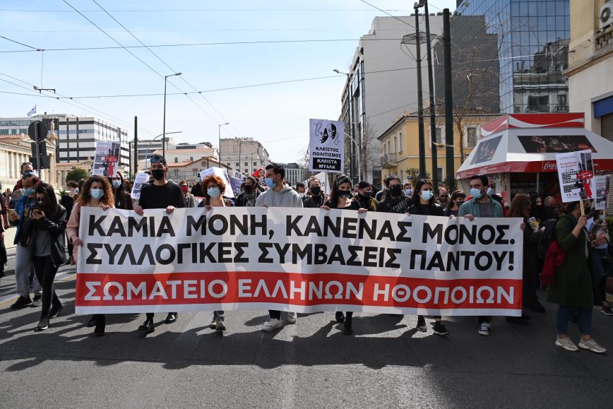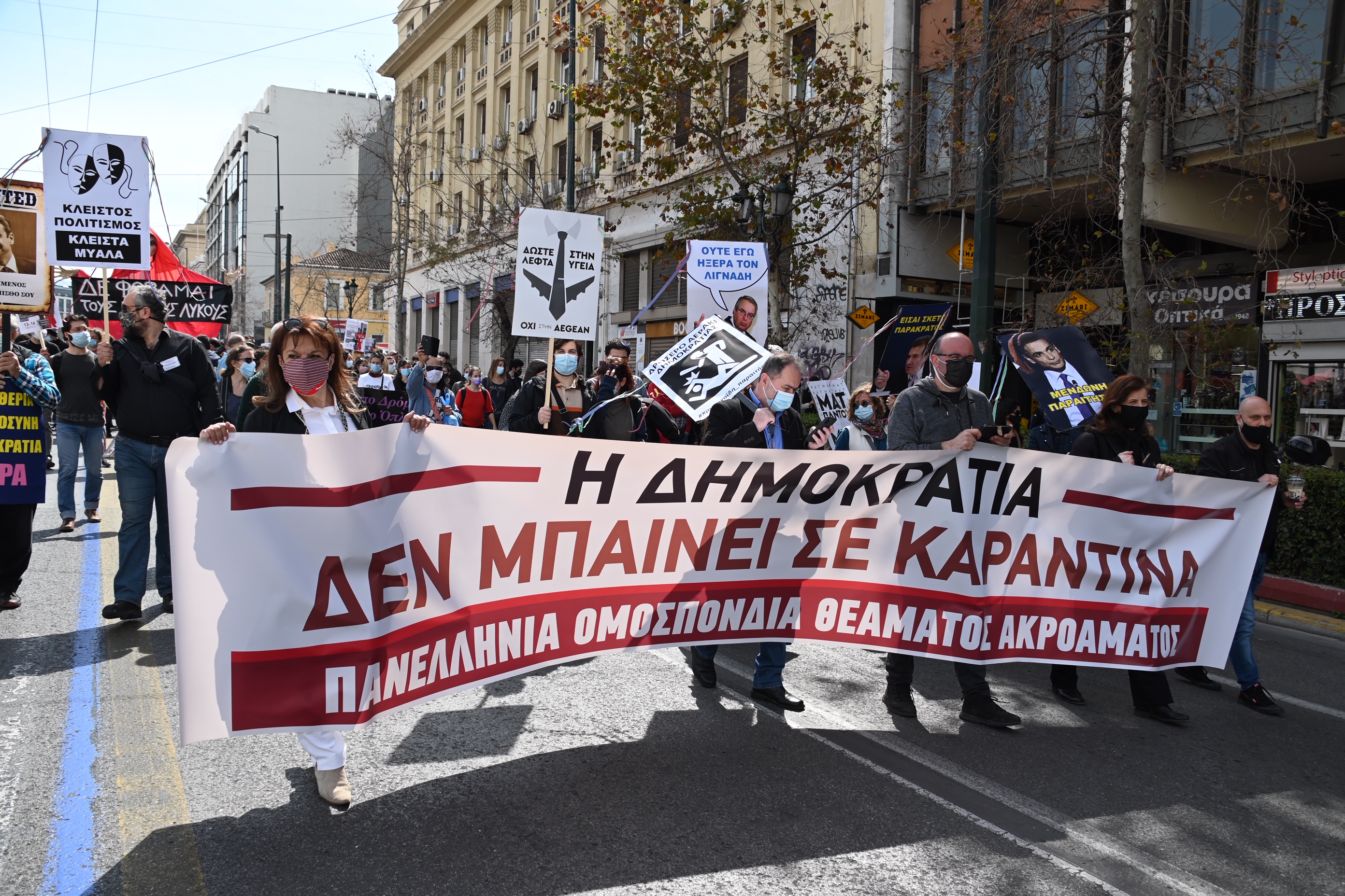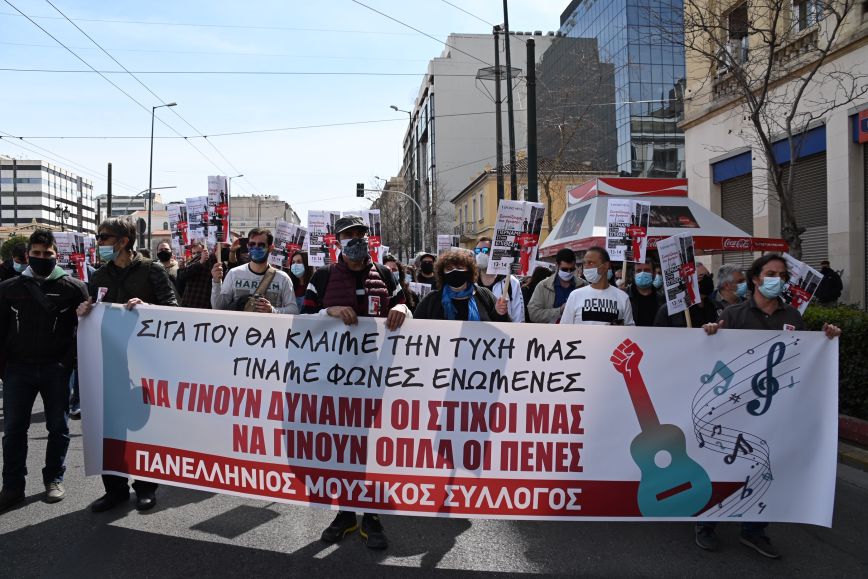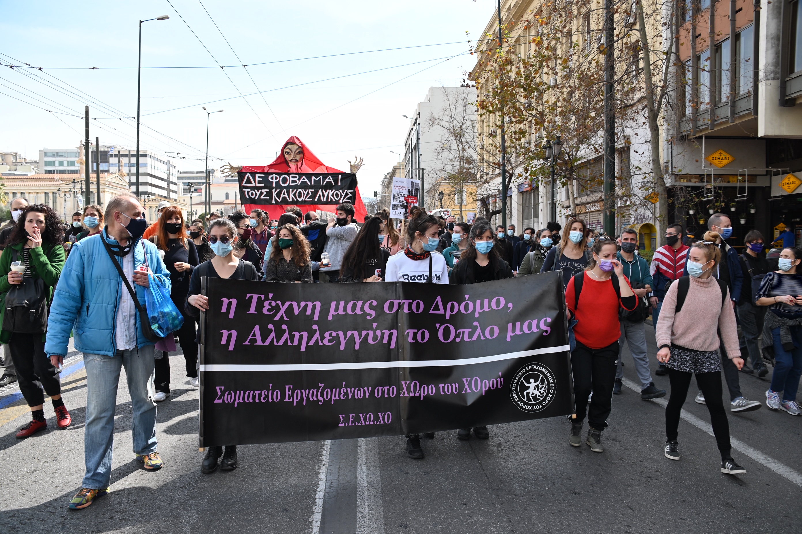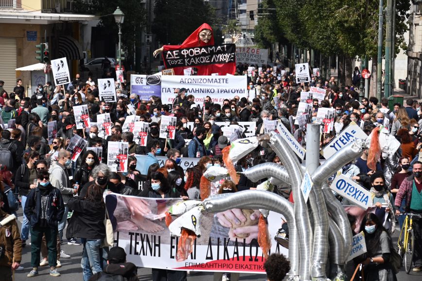 Στους δρόμους βρίσκονται για ακόμη μία φορά οι καλλιτέχνες, αυτή τη φορά πραγματοποιώντας πορεία προς τη Βουλή.