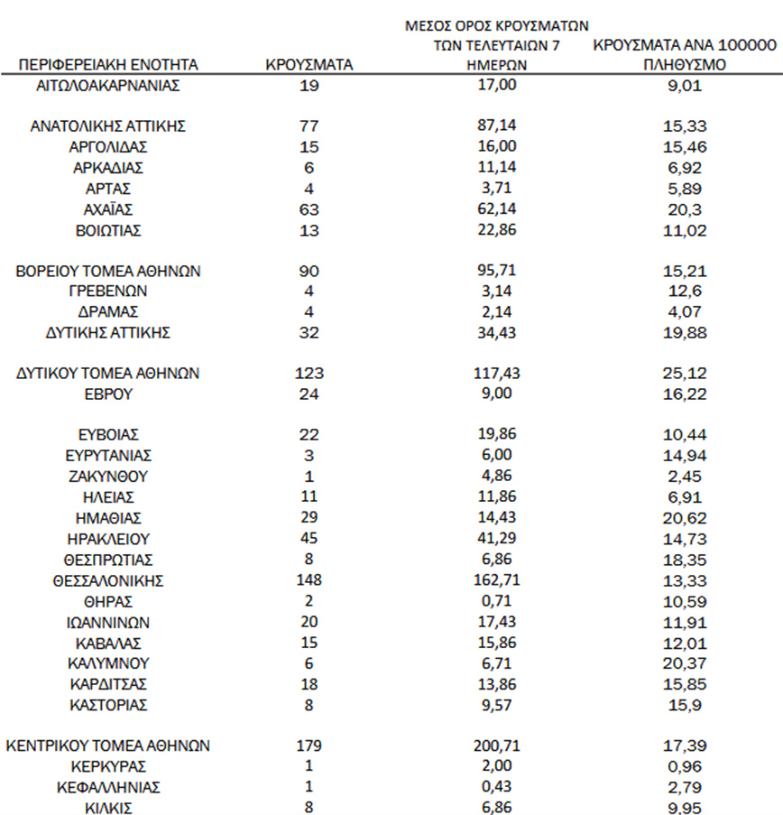 - 179 κρούσματα στην Π.Ε. Κεντρικού Τομέα Αθηνών