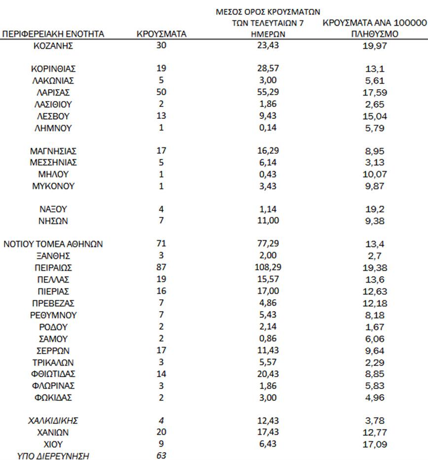 - 63 κρούσματα στην Π.Ε. Αχαΐας