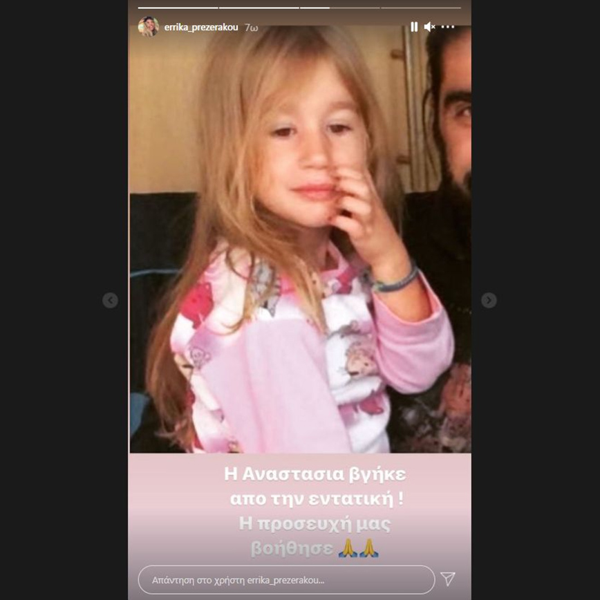 Οι προσευχές εισακούστηκαν και η Έρρικα Πρεζεράκου επανήλθε με νέο μήνυμα στον προσωπικό της λογαριασμό στο Instagram με το οποίο ενημέρωνε πως η μικρή Αναστασία βγήκε από την εντατική.