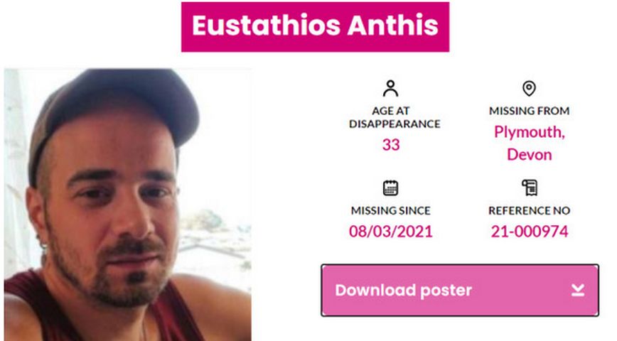 Ο Στάθης Άνθης, γνωστός ως «Stan» στην περιοχή, σύμφωνα με τα βρετανικά ΜΜΕ, αγνοείται από τις 8 Μαρτίου. Τότε ήταν η τελευταία φορά που εθεάθη στο ξενοδοχείο Burgh Island στην παραθαλάσσια περιοχή Bigbury-on-Sea, όπου δούλευε. Σύμφωνα με τις αρχές του Kingsbridge και όπως αναφέρει το Star, ο Στάθης έφυγε από το δωμάτιό του στις 5 τα ξημερώματα της Δευτέρας σε «αγχώδη» κατάσταση.
