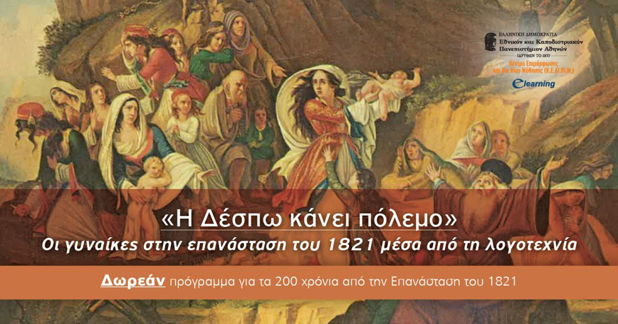 Το πρόγραμμα έχει τον τίτλο «Η Δέσπω κάνει πόλεμο» – Οι γυναίκες στην επανάσταση του 1821 μέσα από τη λογοτεχνία και εισηγήτρια είναι η Ομότιμη Καθηγήτρια Νεοελληνικής
