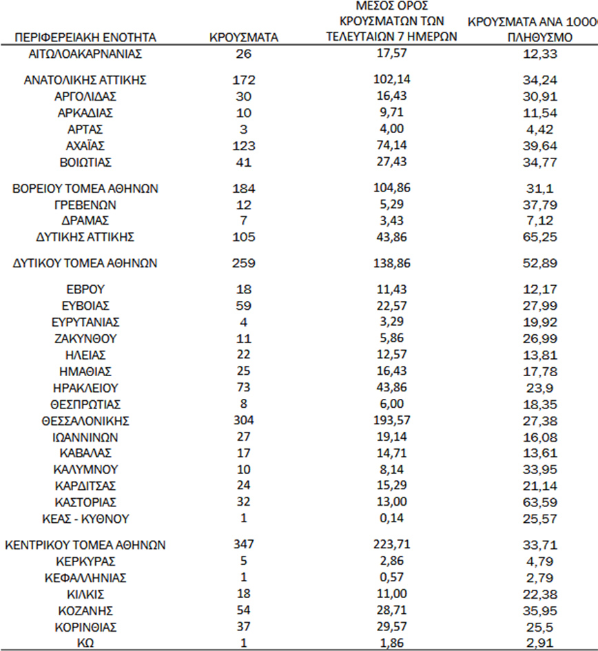 - 26 κρούσματα στην Π.Ε. Αιτωλοακαρνανίας