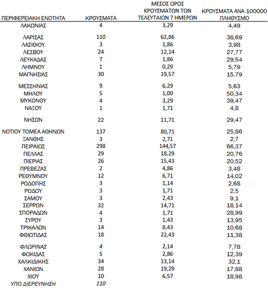 - 110 κρούσματα στην Π.Ε. Λάρισας