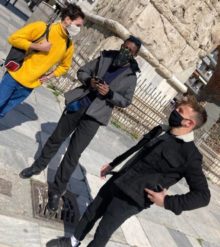 Φοιτητές των αγγλόφωνων προγραμμάτων μεταπτυχιακών σπουδών στα τμήματα Δημοσιογραφίας και Κινηματογράφου του ΑΠΘ, ο Μαζ από τα Μπαρμπέιντος, ο Νικ από το Γιοχάνεσμπουργκ, ο Λίο από τη Βερόνα και ο Νίκολας από το Κονέκτικατ, θα μπορούσαν όλο αυτό το διάστημα να παρακολουθούν τα διαδικτυακά τους μαθήματα από τις πατρίδες τους. Η Θεσσαλονίκη όμως -στην οποία έφθασαν τον περασμένο Σεπτέμβριο, ανάμεσα στα λοκντάουν- τους «κράτησε» εδώ.