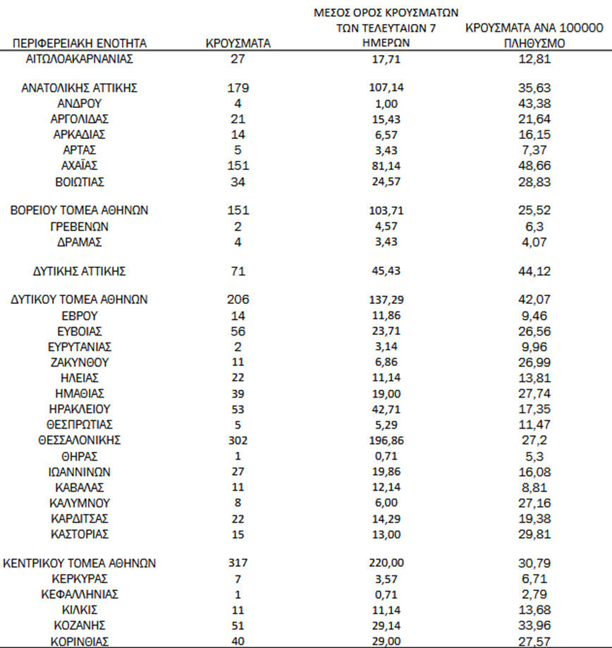- 27 κρούσματα στην Π.Ε. Αιτωλοακαρνανίας