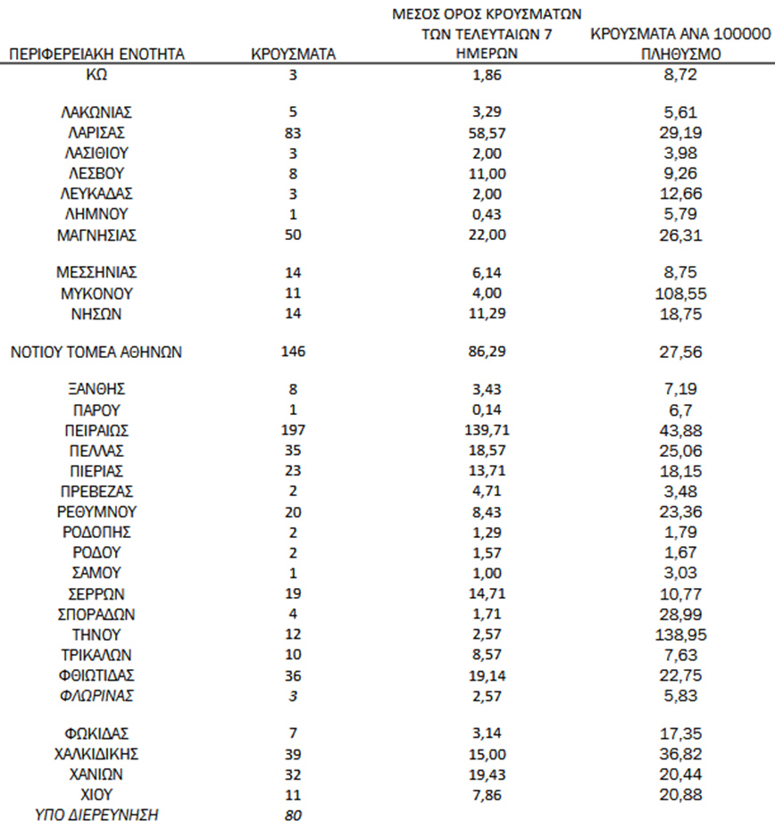 - 80 κρούσματα υπό διερεύνηση