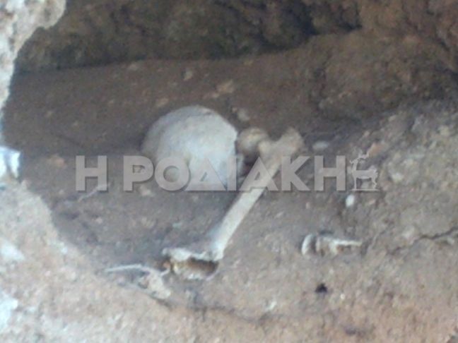 Το μακάβριο θέαμα, που πιθανολογείται ότι βρίσκεται στο δυσπρόσιτο αυτό σημείο για πολλές δεκαετίες, εντοπίστηκε σύμφωνα με πληροφορίες της ΡΟΔΙΑΚΗΣ στο πλαίσιο εργασιών που βρίσκονται σε εξέλιξη για ελεγχόμενη ανατίναξη και ρίψη βράχων που υπάρχουν στο βουνό, έτσι ώστε να μειωθεί στο ελάχιστο ο κίνδυνος κατολισθήσεων.
