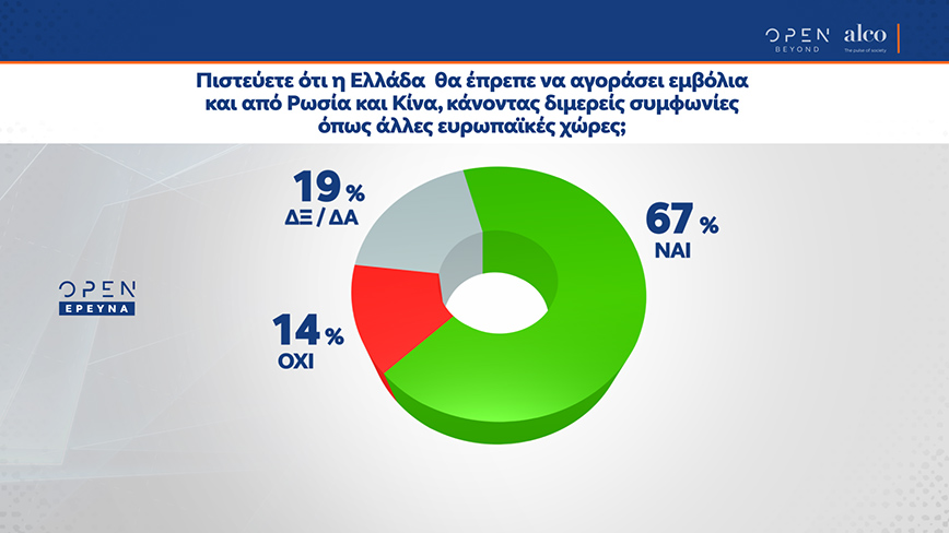 To 67% πιστεύει ότι η Ελλάδα θα έπρεπε να αγοράσει εμβόλια και από Ρωσία και από Κίνα.