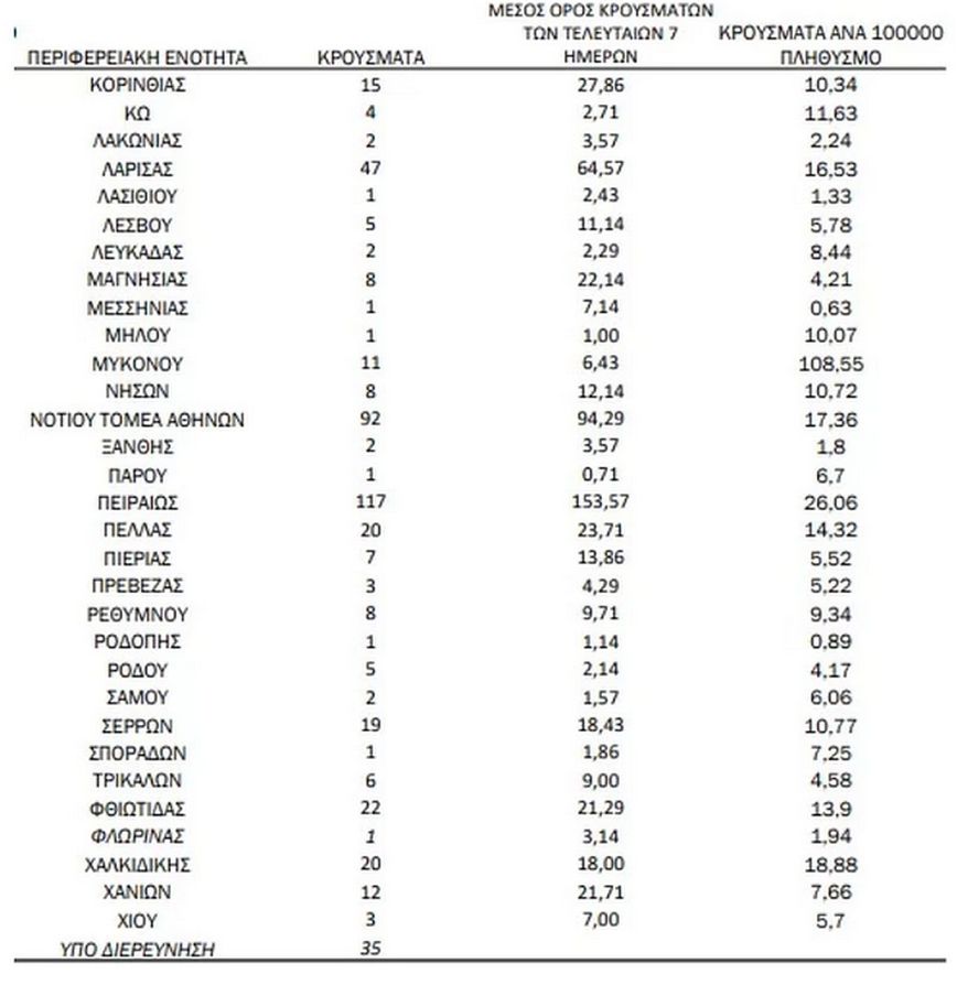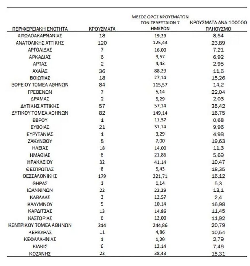 Δείτε αναλυτικά την κατανομή των 1.514 κρουσμάτων στην Ελλάδα