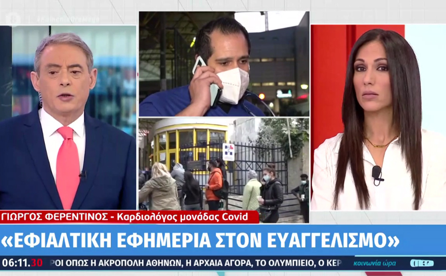 «Ήταν εφιαλτική εφημερία για ακόμα μια φορά. Λειτουργούμε σε καθεστώς πολέμου» δήλωσε στο MEGA» ο Γιώργος Φερεντίνος, καρδιολόγος στον «Ευαγγελισμό».