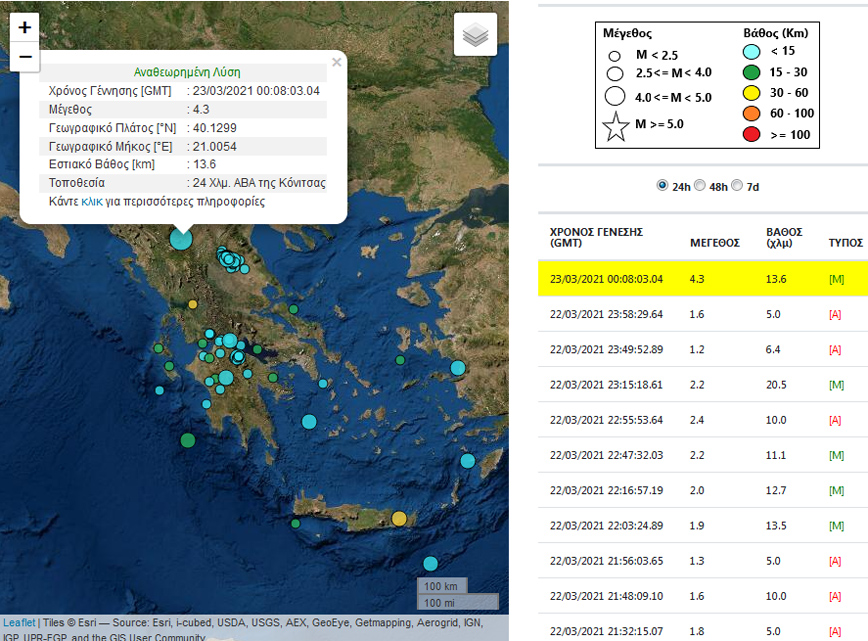 Σεισμική δόνηση 4,3 Ρίχτερ σημειώθηκε στις 02:08 τη νύχτα στην περιοχή κοντά στην Κόνιτσα.
