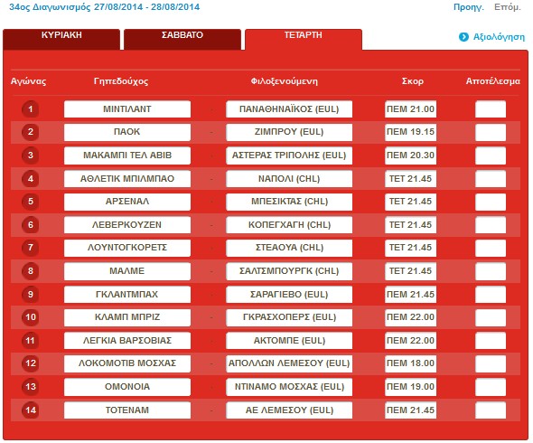 Τα παιχνίδια είναι τα παρακάτω: