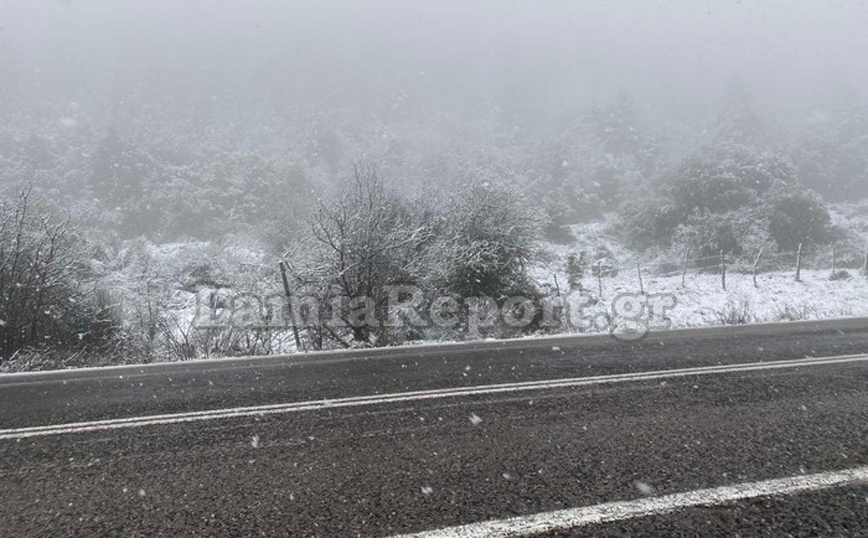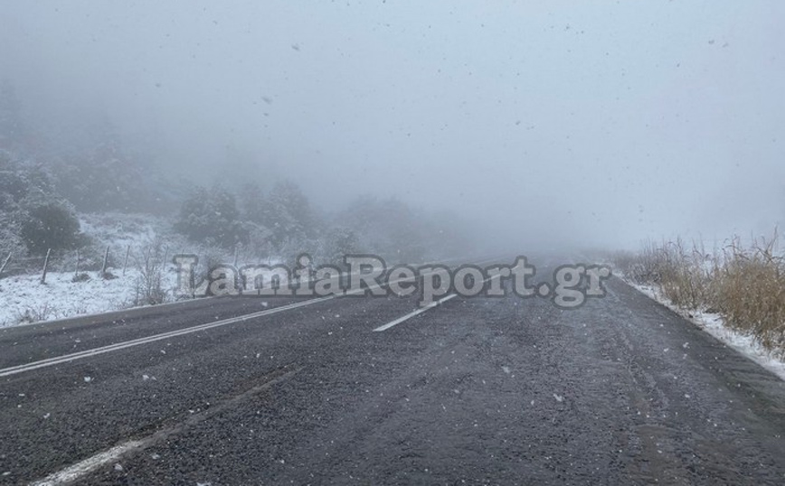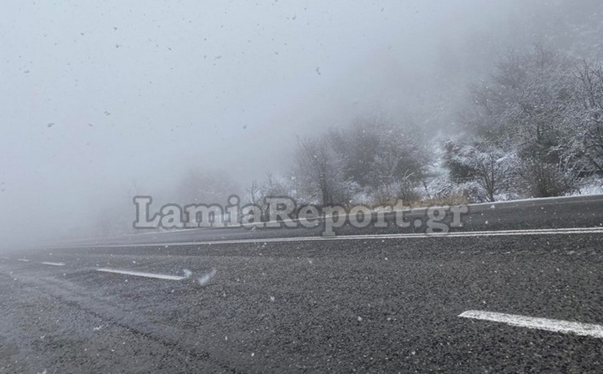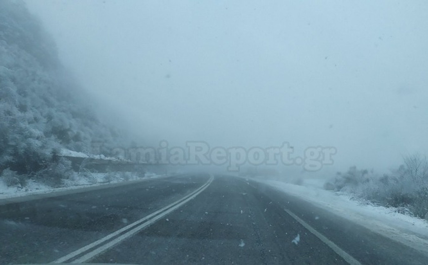 Τα μηχανήματα της Περιφέρειας έχουν ρίξει αλάτι με αποτέλεσμα να μην «το χει πιάσει» στο δρόμο, ωστόσο παντού γύρω το τοπίο είναι ολόλευκο, ενώ οι διερχόμενοι οδηγοί επιβεβαιώνουν ότι «ρίχνει με όρεξη».