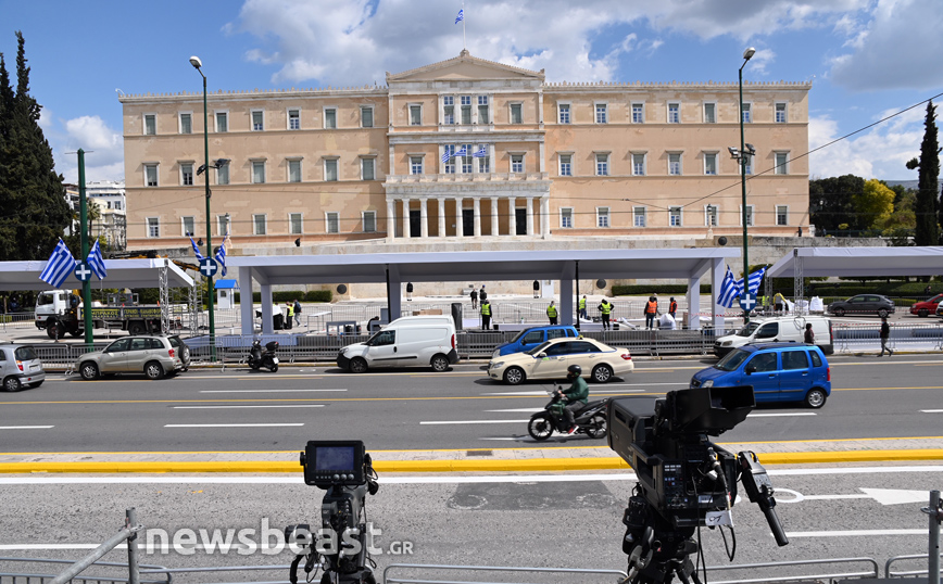 Συνεργεία έχουν καθαρίσει το μνημείο του Άγνωστου Στρατιώτη ενώ είναι σε εξέλιξη η τοποθέτηση σημαιών σε σημεία επί της Βασιλίσσης Αμαλίας, στην πλατεία Συντάγματος και κτίρια γύρω από αυτή.