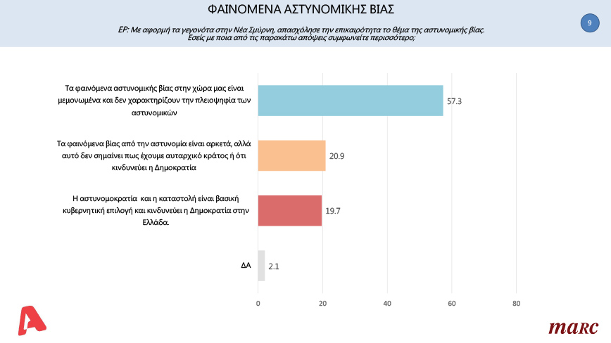 «Τα φαινόμενα βίας από την αστυνομία είναι αρκετά, αλλά αυτό δεν σημαίνει πως έχουμε αυταρχικό κράτος ή ότι κινδυνεύει η Δημοκρατία» απάντησε το 20,9%.