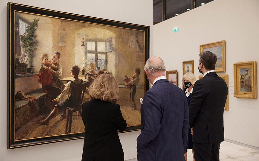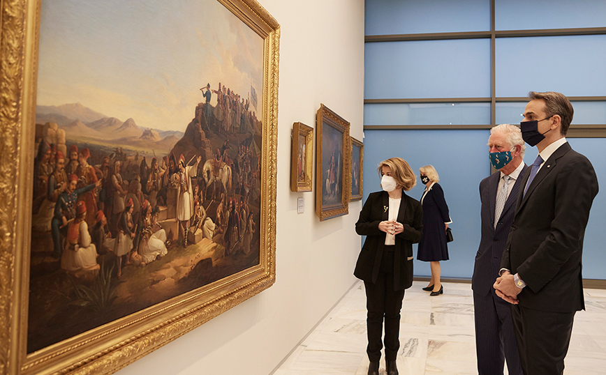 Οι υψηλοί προσκεκλημένοι παρακολούθησαν τα εγκαίνια της Εθνικής Πινακοθήκης, ενώ ξεναγήθηκαν στην έκθεση που στήθηκε στον πρώτο όροφο με έργα που σχετίζονται με την Επανάσταση του 1821.