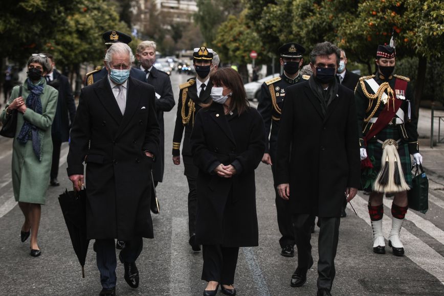 Στους δυνατούς δεσμούς φιλίας μεταξύ Ελλάδας και Ηνωμένου Βασιλείου αναφέρθηκε η Πρόεδρος της Δημοκρατίας Κατερίνα Σακελλαροπούλου κατά τη συνάντησή της, με τον πρίγκιπα της Ουαλίας και την δούκισσα της Κορνουάλης, αμέσως μετά την ολοκλήρωση της στρατιωτικής παρέλασης.