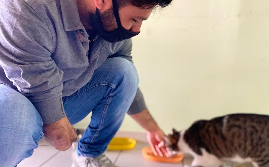Ο 26χρονος ενσωματώθηκε πολύ γρήγορα στην εθελοντική ομάδα και την αγάπη που παίρνει από τα μέλη της φροντίζει να την ανταποδίδει με όποιον τρόπο μπορεί. Είτε φροντίζοντας τα φυτά και τις γάτες που τού έχουν, μάλιστα, ιδιαίτερη αδυναμία, είτε βοηθώντας σε διάφορες δράσεις της ομάδας. «Εδώ νιώθω ασφάλεια. Σαν να είμαι στην οικογένεια μου», υπογραμμίζει.
