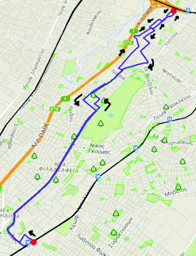 Η δεξιόστροφη θα εκτελεί πορεία 20,3 χλμ, ως εξής:Π.ΡΑΛΛΗ – ΛΕΩΦ.ΚΩΝ/ΠΟΛΕΩΣ – ΔΗΛΗΓΙΑΝΝΗ – ΜΕΤΑΞΑ – ΗΠΕΙΡΟΥ – ΠΑΤΗΣΙΩΝ – Λ.ΑΛΕΞΑΝΔΡΑΣ – ΖΑΧΑΡΩΦ – ΛΕΩΦ.ΜΕΣΟΓΕΙΩΝ – ΛΕΩΦ.Π.ΚΑΝΕΛΛΟΠΟΥΛΟΥ – ΚΟΚΚΙΝΟΠΟΥΛΟΥ – ΛΕΩΦ.Γ.ΠΑΠΑΝΔΡΕΟΥ – ΟΥΛΩΦ ΠΑΛΜΕ – ΕΥΦΡΟΝΙΟΥ – ΡΙΖΑΡΗ – ΛΕΩΦ.ΒΑΣ.ΚΩΝ/ΝΟΥ – ΑΡΔΗΤΤΟΥ – ΚΑΛΛΙΡΟΗΣ – ΧΑΜΟΣΤΕΡΝΑΣ – ΛΕΩΦ.ΚΩΝ/ΠΟΛΕΩΣ – Π.ΡΑΛΛΗ.