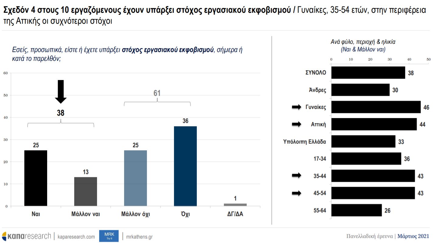 Κάνοντας μια αναγωγή των ποσοστών στον ενεργό πληθυσμό της Ελλάδας θα αναλογιστούμε ένα εξαιρετικά μεγάλο κομμάτι του έχει στοχοποιηθεί και έχει δεχτεί εργασιακό εκφοβισμό. Ο εργασιακός εκφοβισμός δεν είναι τυχαίος. ‘Όποιος τον ασκεί έχει δόλο και σκοπό. Έχει ως σκοπό να διώξει, κυριαρχήσει, επιβληθεί σε κάποιον άλλο συνάδελφό του για τους δικούς του ξεχωριστούς λόγους.