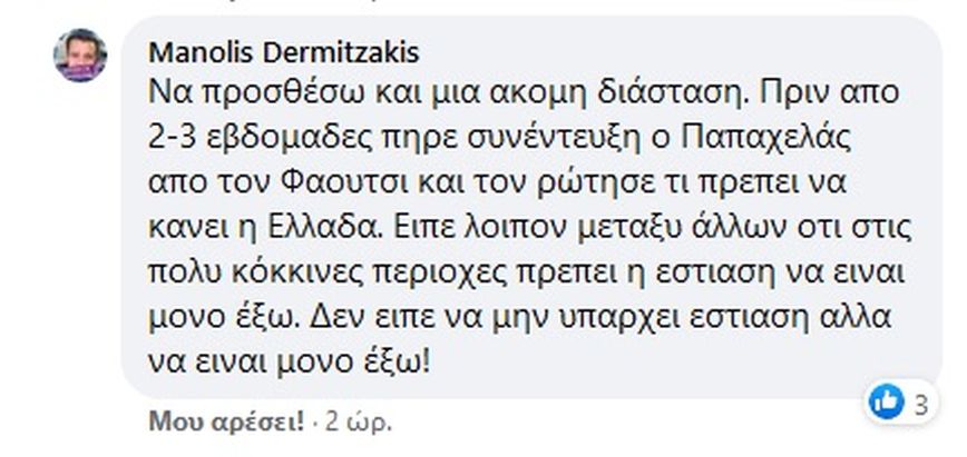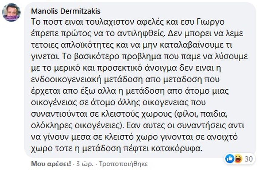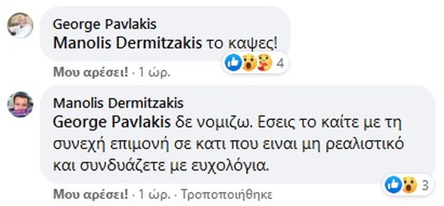 Ο κ. Δερμιτζάκης χαρακτήρισε το ποστ «τουλάχιστον αφελές».