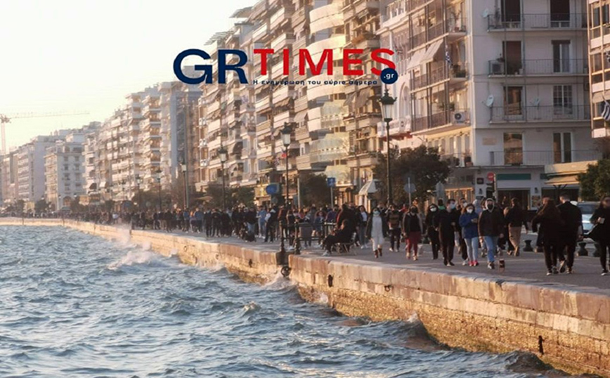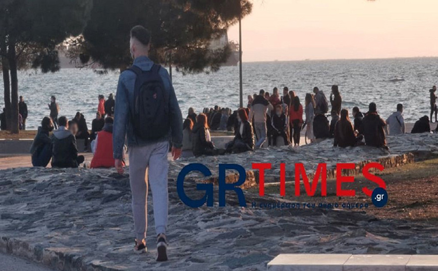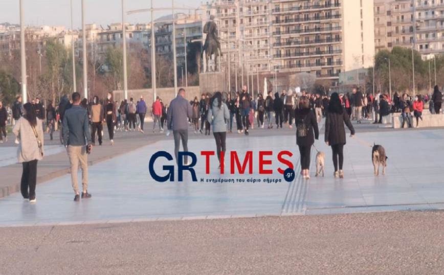 Οι πολίτες επέλεξαν να κάνουν τη βόλτα τους στην παραλία της Θεσσαλονίκης η οποία «πλημμύρισε» για ακόμη μια ημέρα από κόσμο.