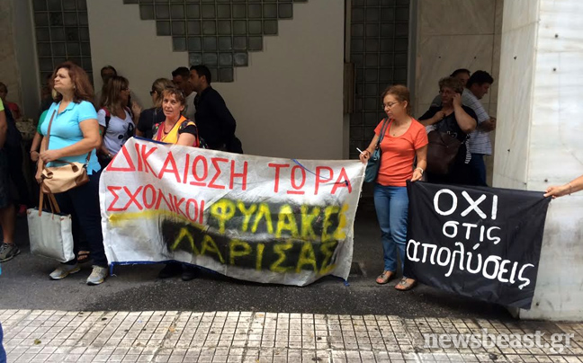 Αιφνιδιαστική συγκέντρωση διαμαρτυρίας έξω από τα γραφεία του ΠΑΣΟΚ στη Χαριλάου Τρικούπη πραγματοποιούν περίπου 50 σχολικοί φύλακες, ανήμερα των «γενεθλίων» του κόμματος.