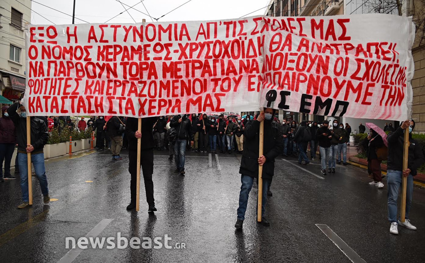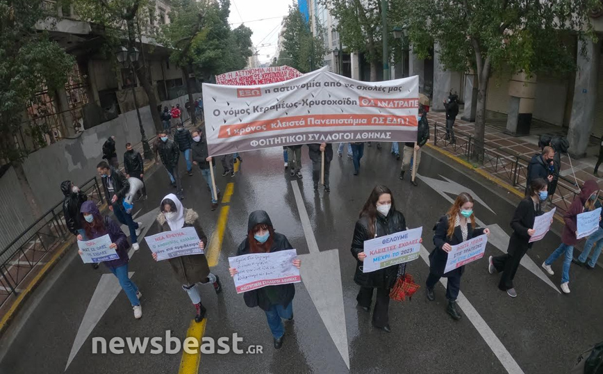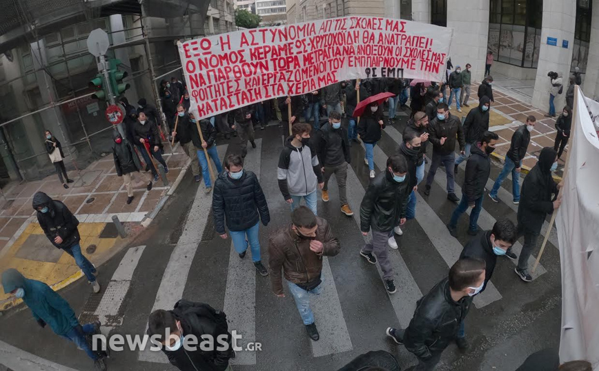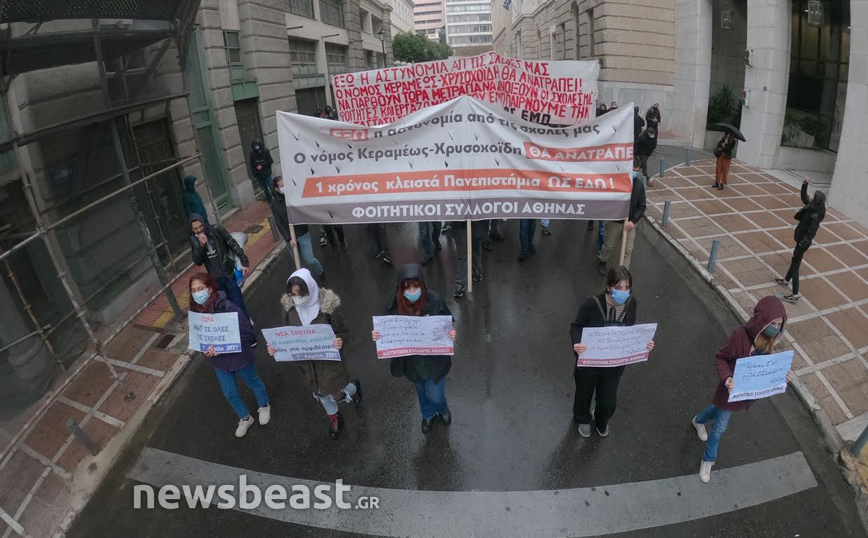 Κύριο αίτημα των φοιτητών είναι το άνοιγμα των σχολών και η επιστροφή τους σε αυτές καθώς και να μην περάσει το νομοσχέδιο για την πανεπιστημιακή αστυνομία.