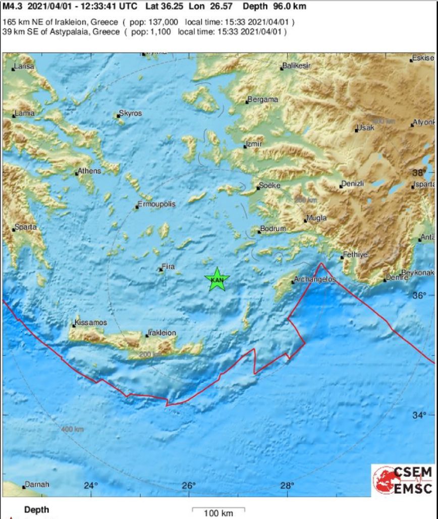 Όπως αναφέρει το Ευρωμεσογειακό Σεισμολογικό Ινστιτούτο το επίκεντρο του σεισμού εντοπίζεται 39 χιλιόμετρα νοτιοανατολικά της Αστυπάλαιας.